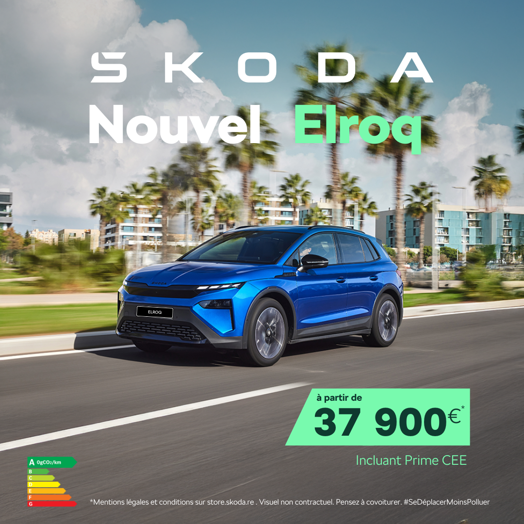 *** Nouvel Elroq : Prix remisé clés en mains pour l’achat d’un nouvel ELROQ LODGE EDITION 60, prime CEE et surbonification batterie déduite acheté neuf avant le 31/10/2025, sous réserve d’éligibilité à celui-ci et sous conditions de revenus. Consommation en cycle mixte (kW/100km) : 15,8 -17,2 – Emissions de CO² (g/km) : 0. Photos non contractuelles. Dans la limite des stocks disponibles.
